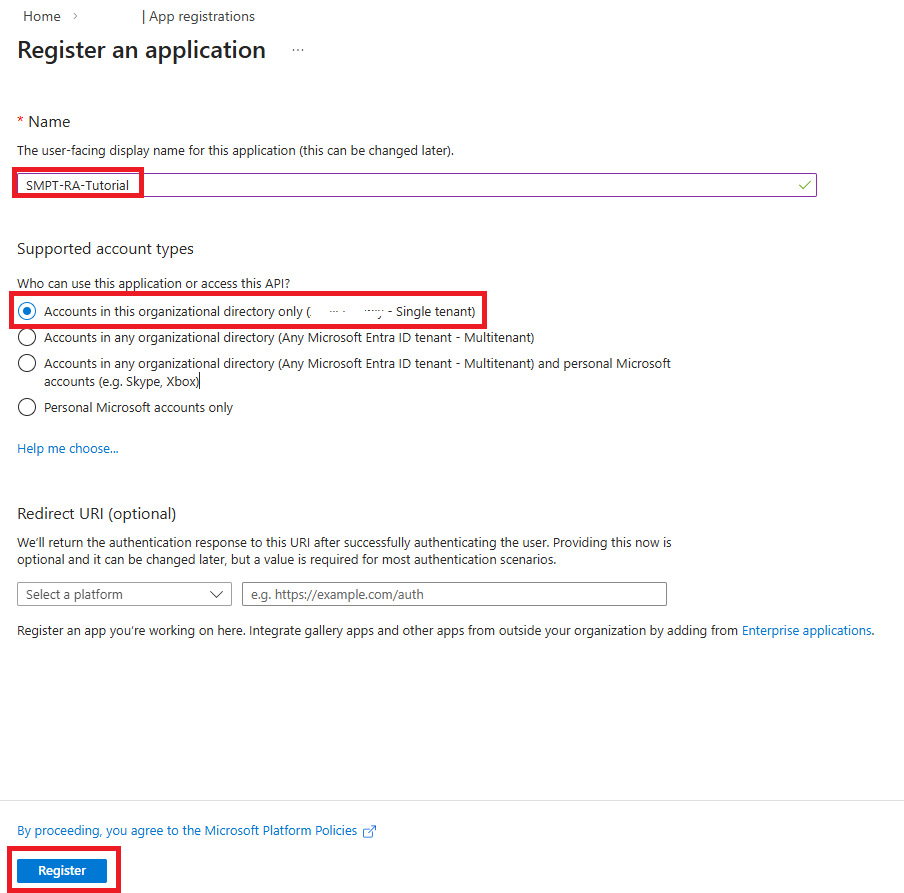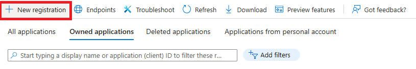 Cliccare su Nuova registrazione per avviare la creazione di una nuova applicazione.