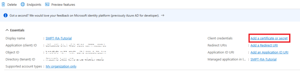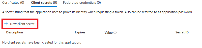 Selezionare Nuovo segreto client per creare una nuova credenziale di tipo segreto.