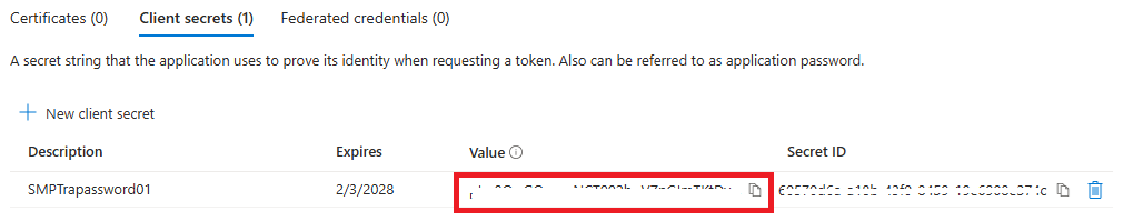 Una volta creato il segreto client: