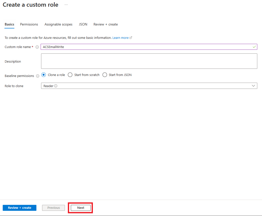 Nella procedura guidata selezionare il ruolo personalizzato creato in precedenza