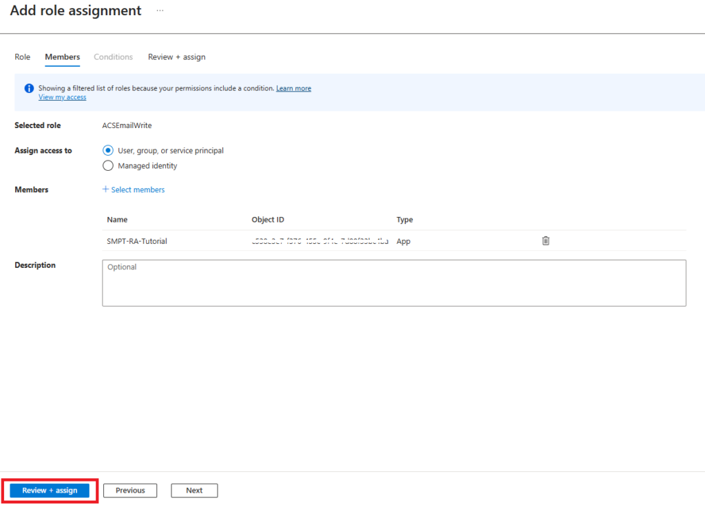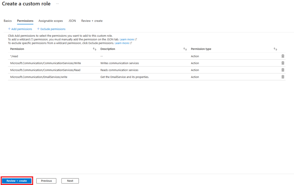 Questa procedura consente la creazione di un ruolo personalizzato e l’assegnazione dei permessi necessari sulla risorsa Azure Communication Service.