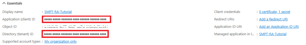 • Entra App ID: ID applicazione (client) della registrazione app.
