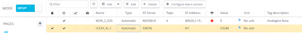 IMPORTANTE: Non utilizzare caratteri accentati per i nomi dei tag (à, ò, è, ü, …) perchè le API Ewon non supportano i nomi di tag con questi caratteri. La lunghezza massima gestita da Rilheva è di 50 caratteri.
