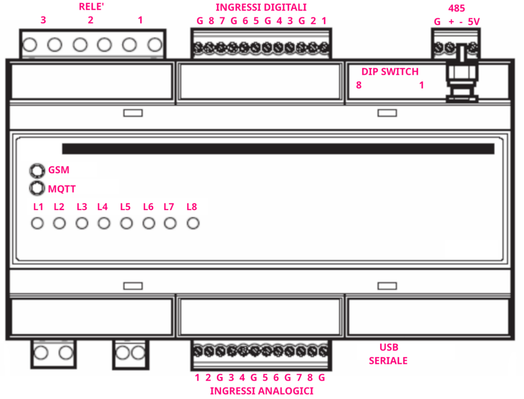 - dispositivo interamente controllato da remoto mediante connessione dati GSM/GPRS/LTE.