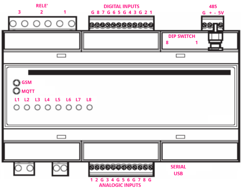 - 8 current/voltage selectable 16-bit analog inputs (0-20mA/0-10V) (with common reference). Sampling >1Hz